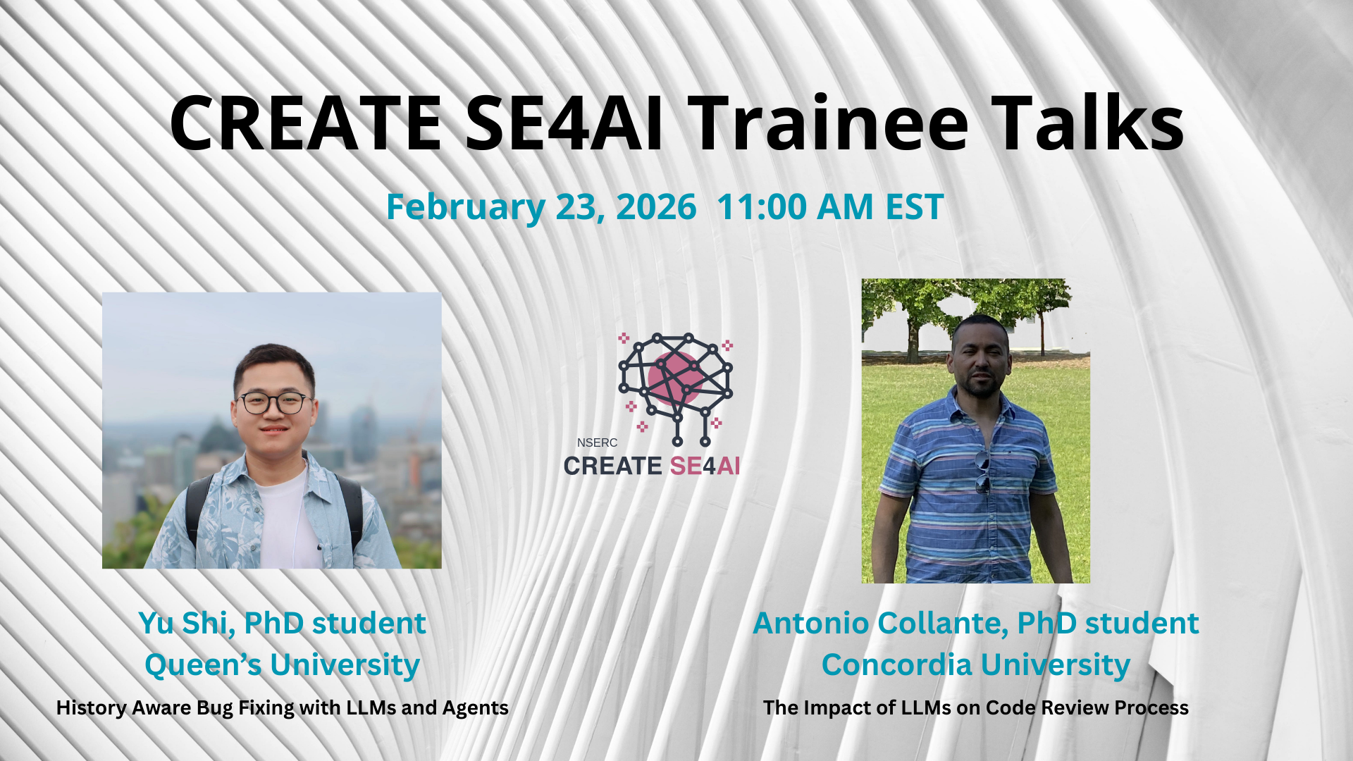 Yu Shi, PhD candidate from Queen's University, shared his work From HAFix to HAFixAgent: History-Aware Bug Fixing with LLMs and Agents. Read More